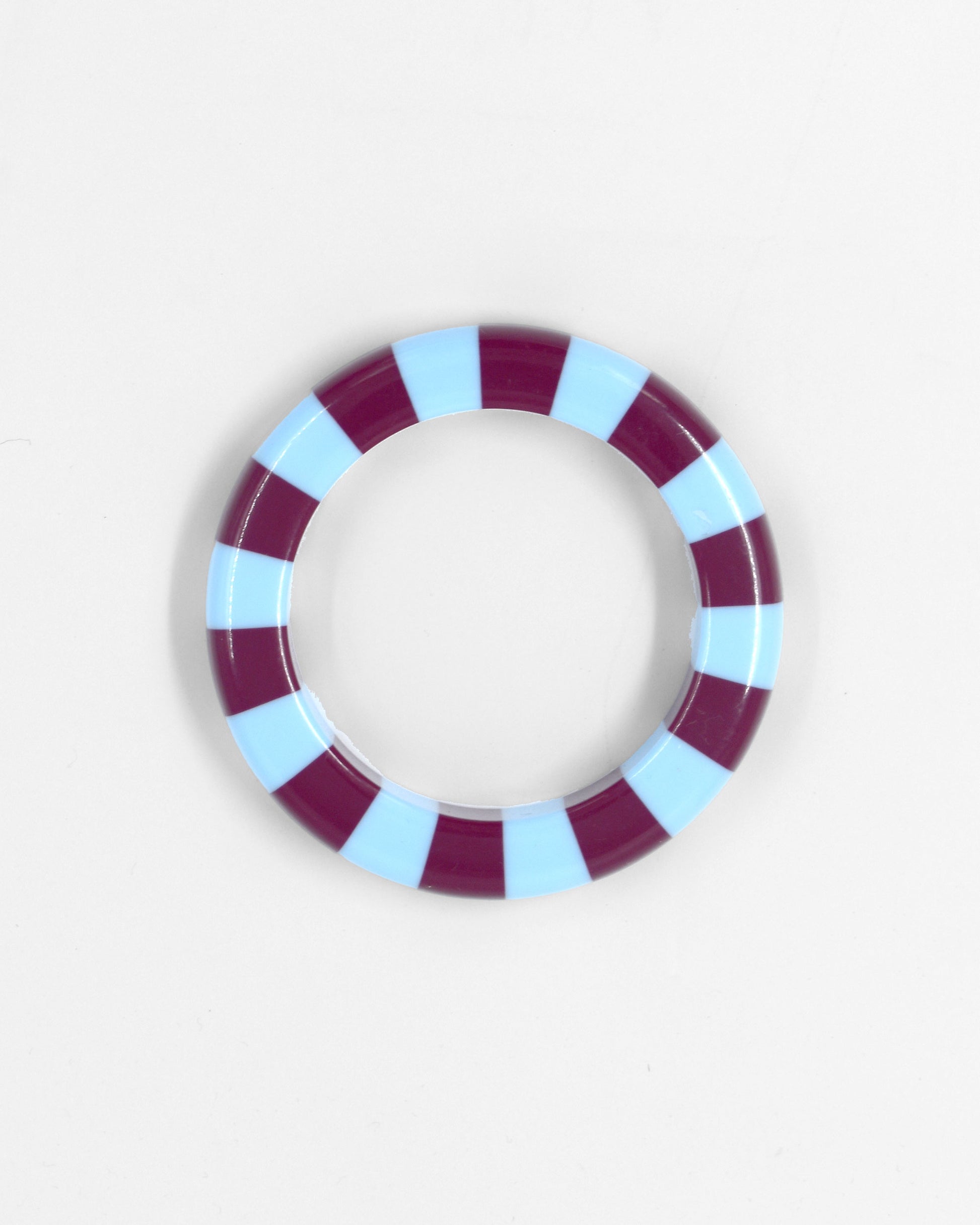 Voeg een vleugje seventies nostalgia toe aan je outfit met onze handgemaakte resin bangle. Deze armband is de perfecte mix van speels en stijlvol, uitgevoerd in een gedurfd geblokt patroon van blauw en diep bordeaux rood.