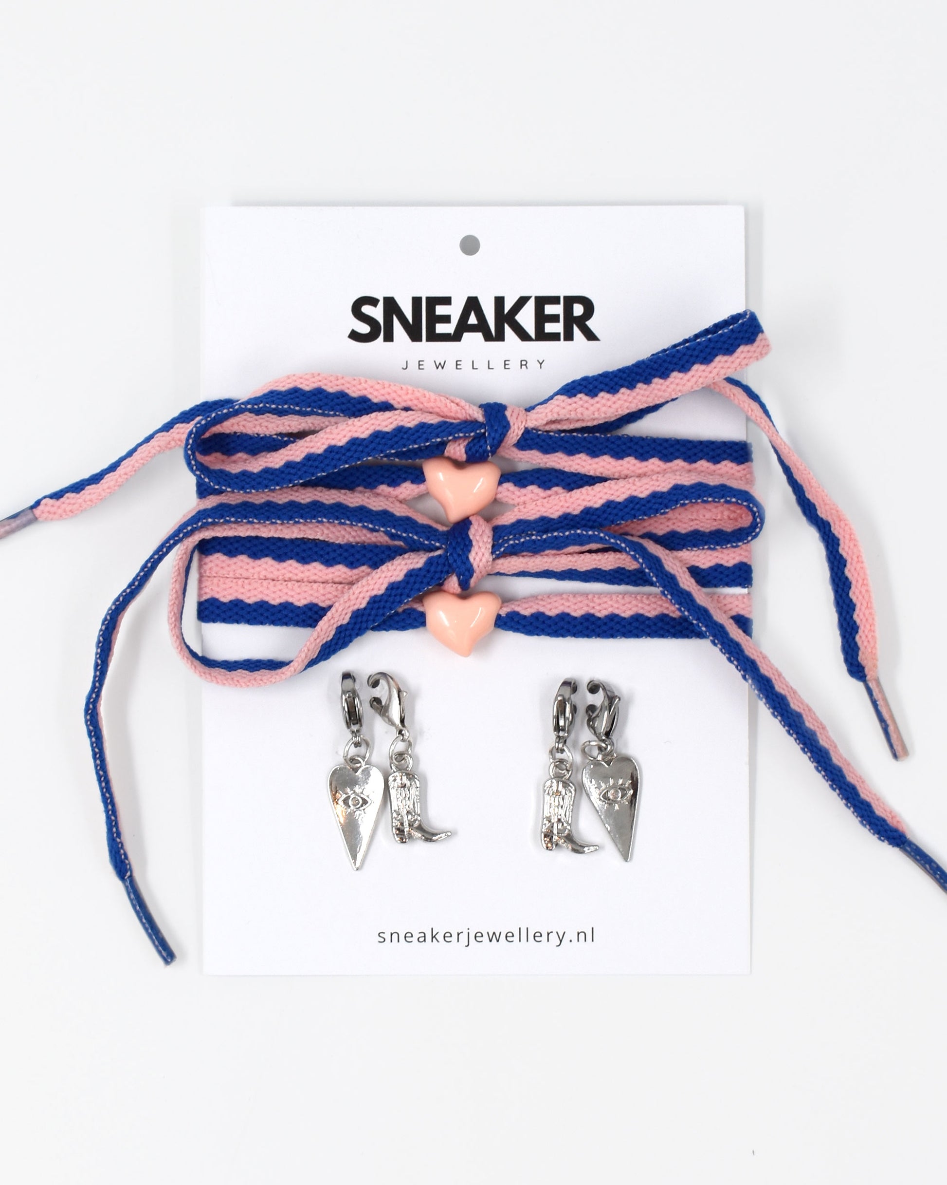 Geef je sneakers een gedurfde upgrade met onze veters en bedeltjes. Deze blauw roze veters met bedels geven je sneakers een unieke look.