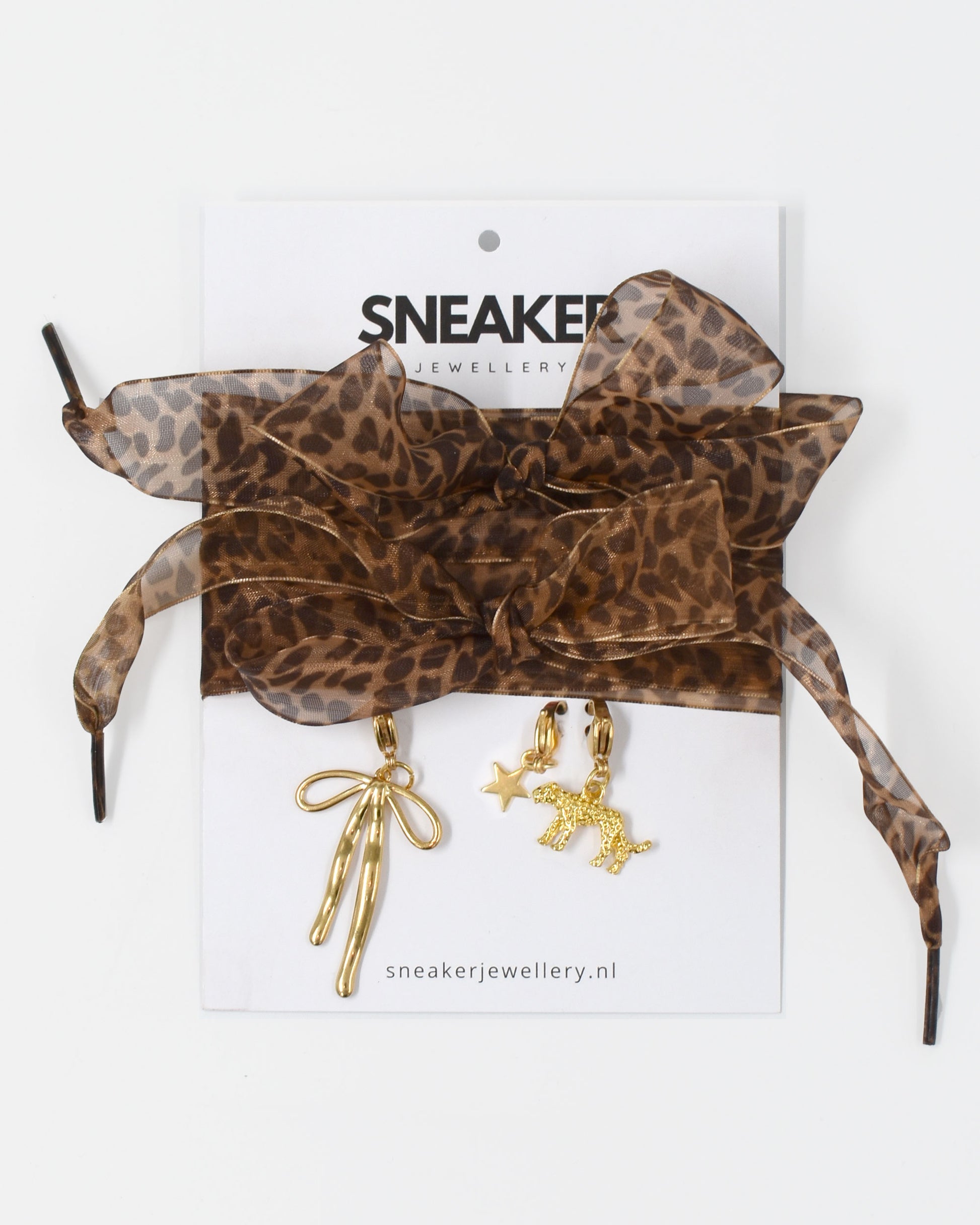 Geef je sneakers een gedurfde upgrade met onze veters en bedeltjes. Deze panter veters met goudkleurige bedels geven je sneakers een unieke, speelse look.