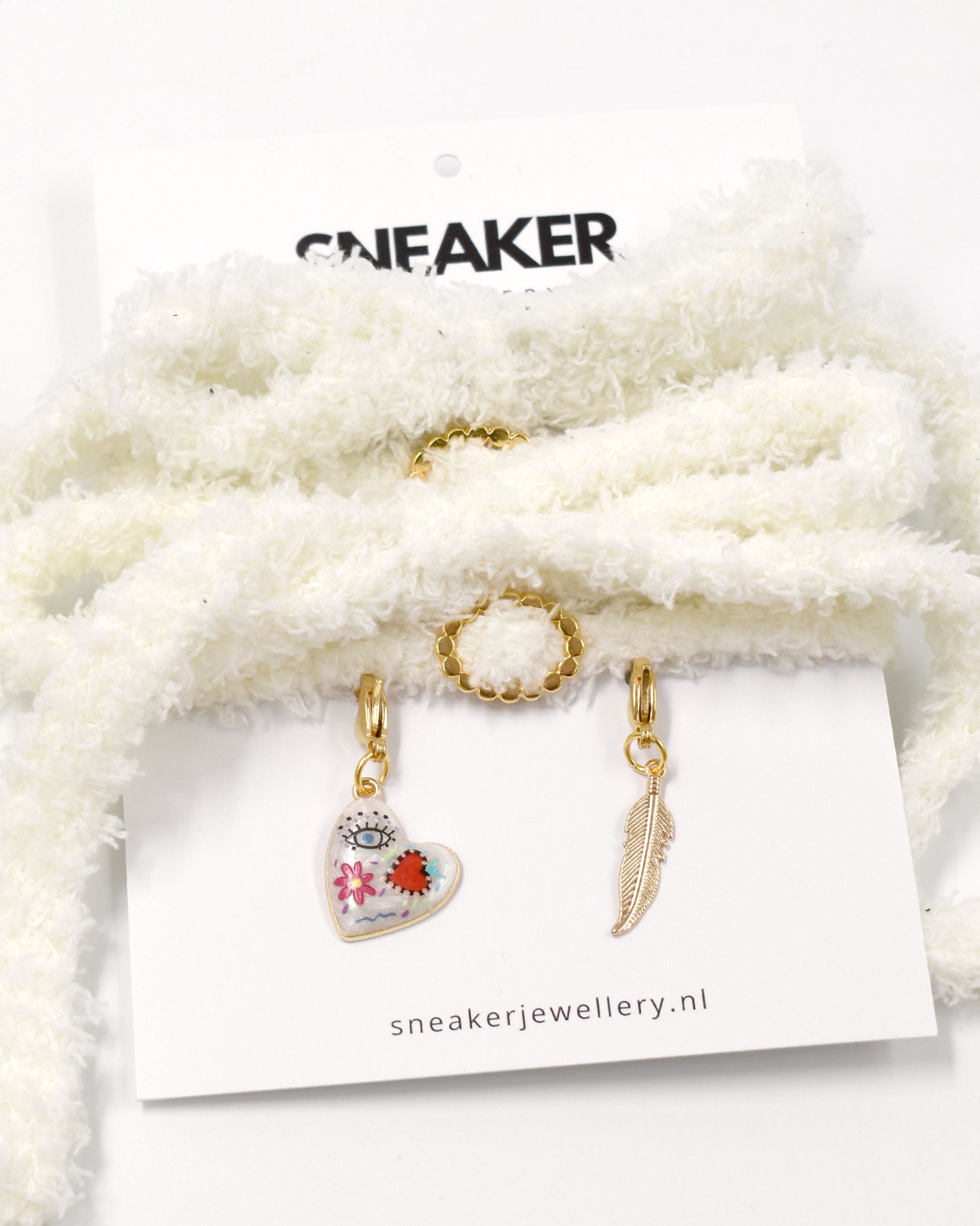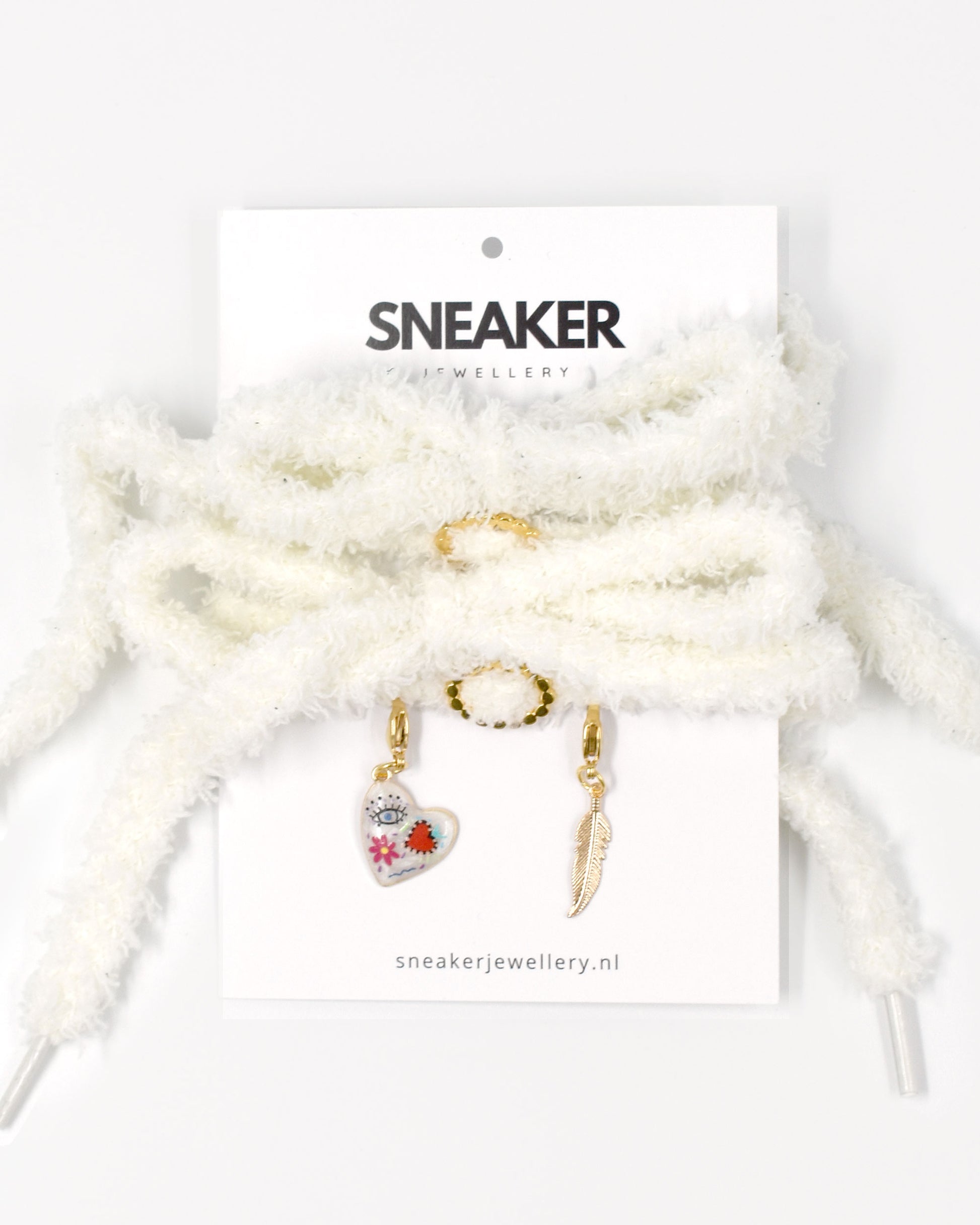 Geef je sneakers een gedurfde upgrade met onze veters en bedeltjes. Deze toffe witte teddy veters met bedels geven je sneakers een unieke look.